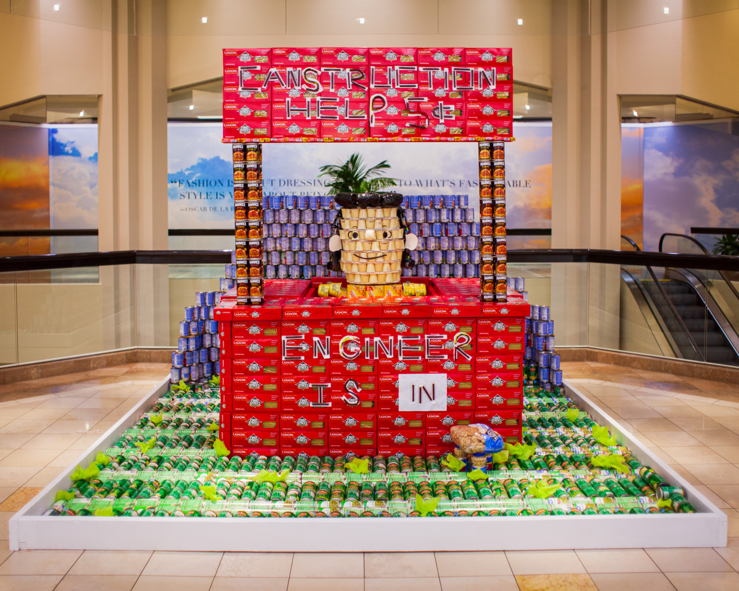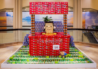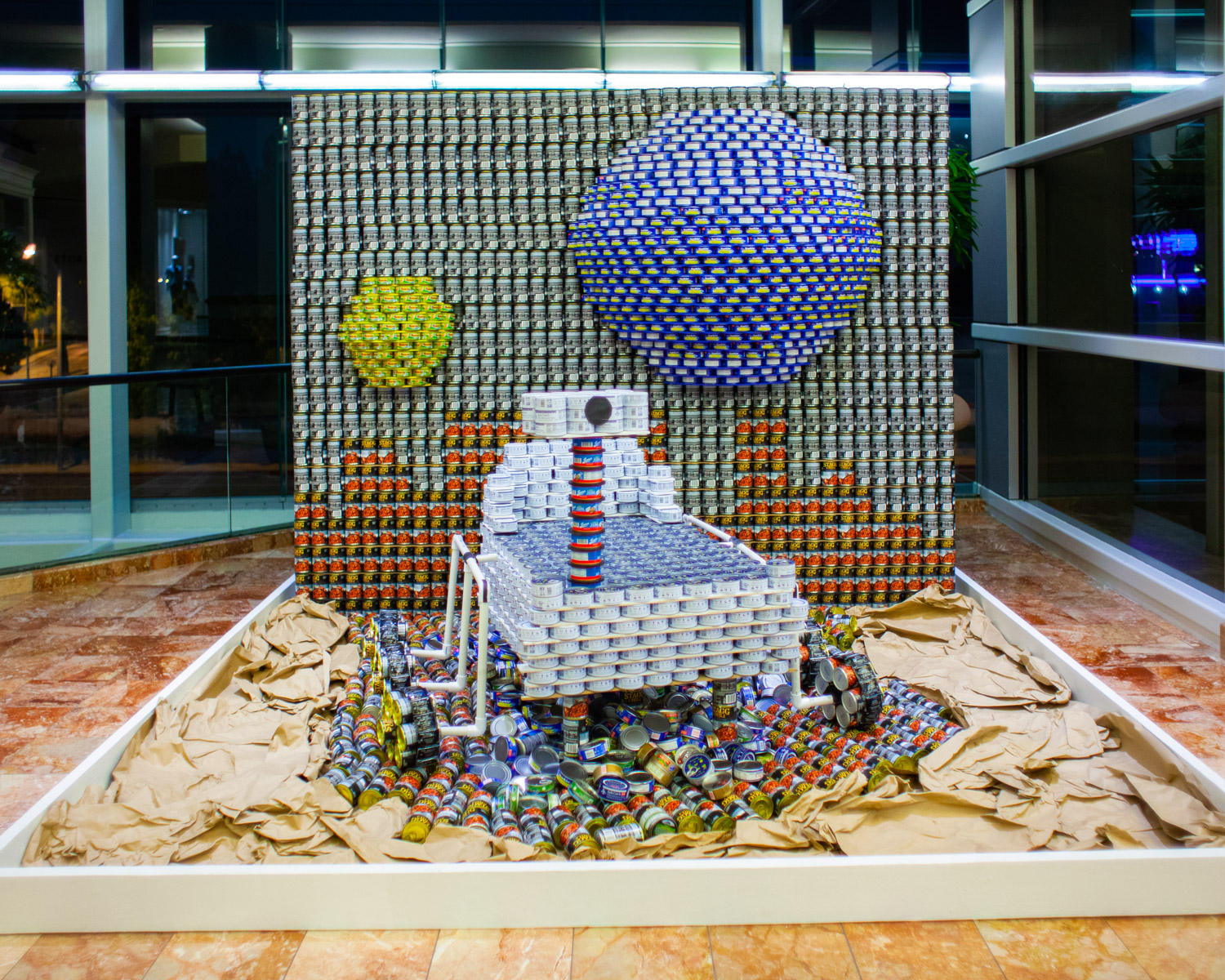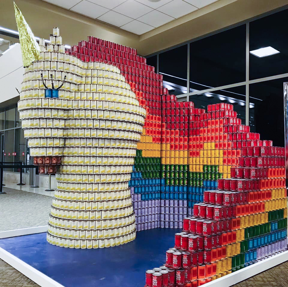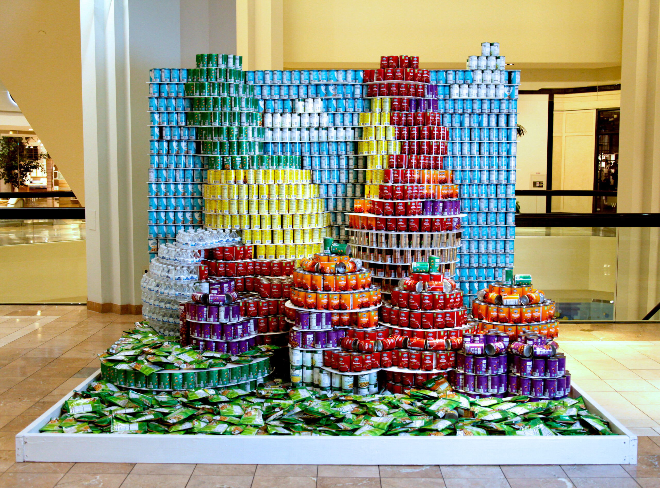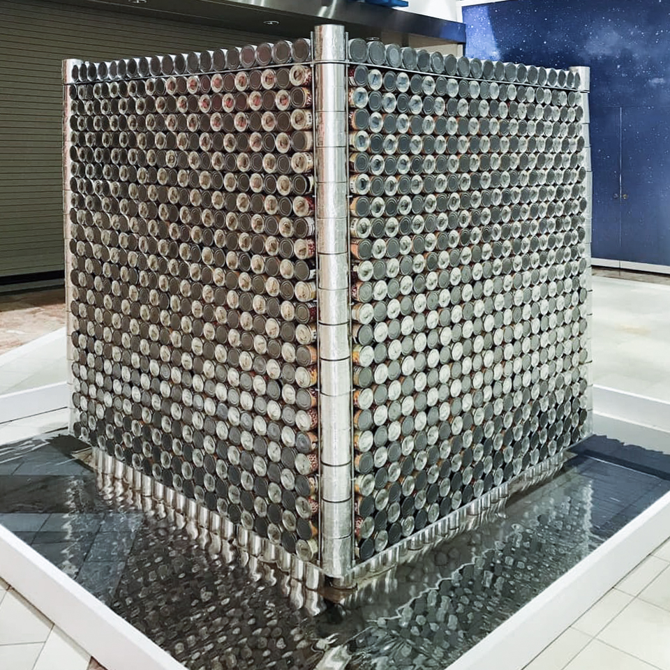 Design and build structures made entirely from canned foods within a 10’x10′ space